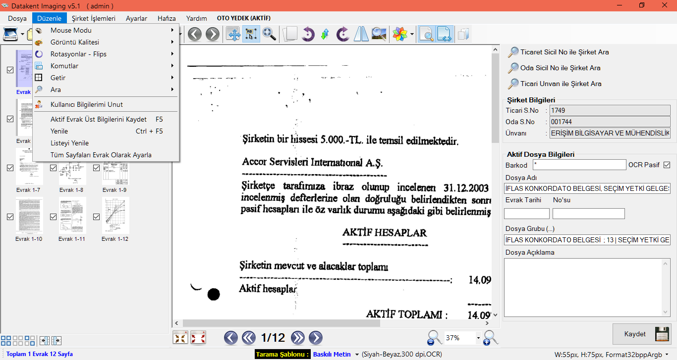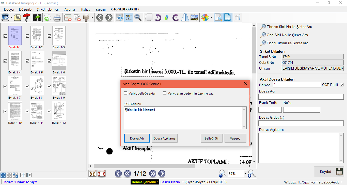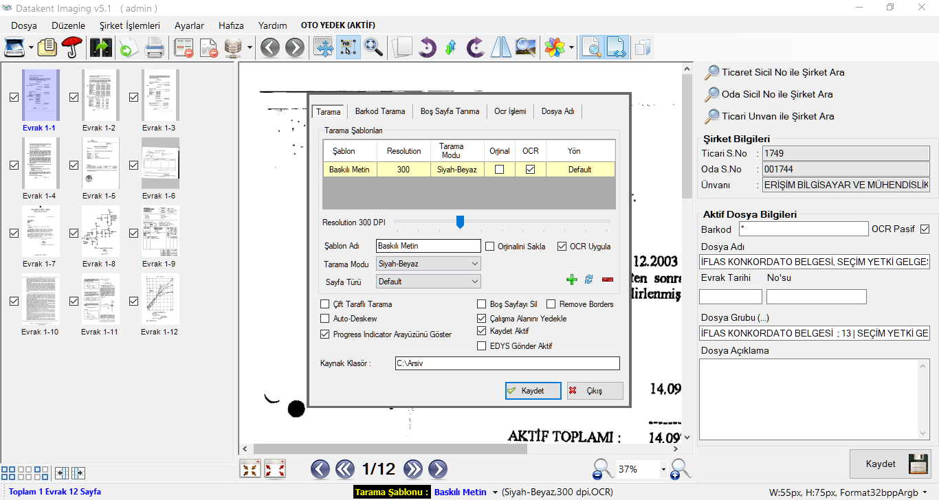 OCR destekli gelişmiş tarayıcı uygulaması ile belgelerinizi tarayıp sisteme aktarabilirsiniz.