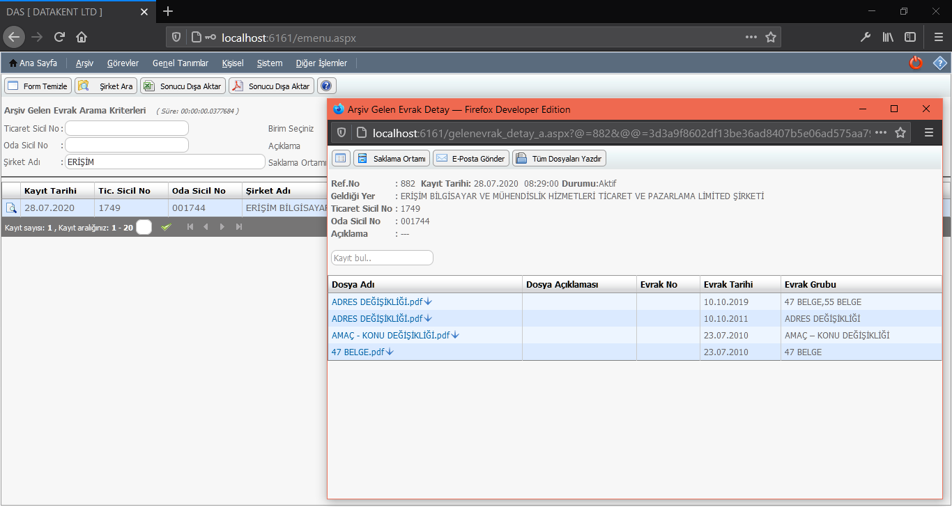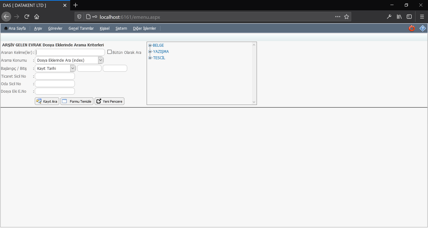 - Arşivlenen belgelere, belgenin içerisindeki herhangi bir kelimeden veya üst veriden sorgulama yapılarak hızlı erişim,