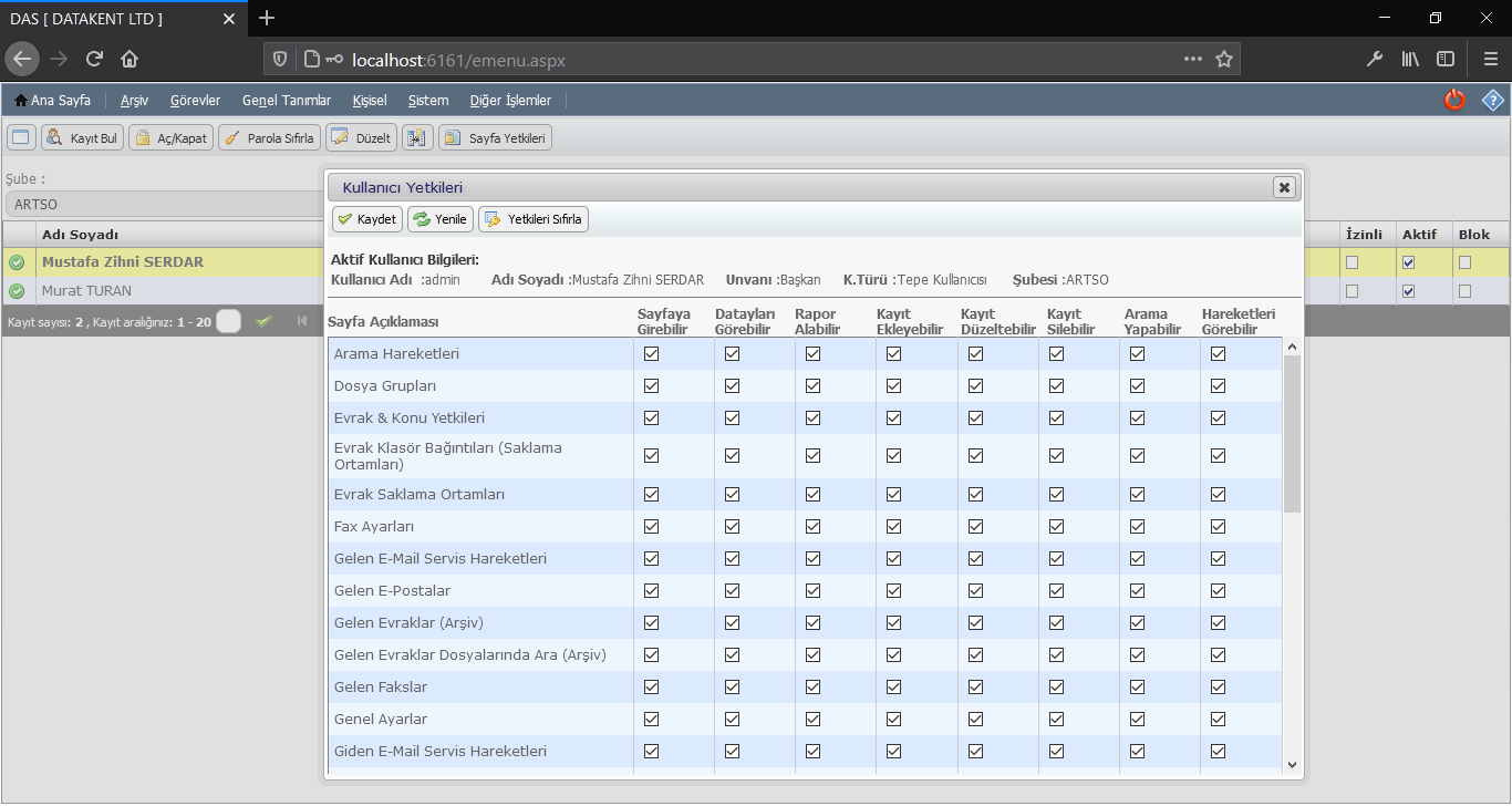 Kullanıcıya özel yetkilendirme ile sistem kullanıcıların neler yapıp yapamayacağını belirleyebilirsiniz.